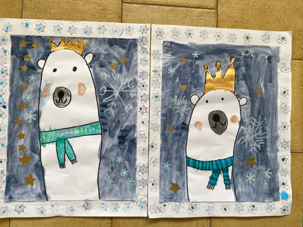 Notre maîtresse nous a expliqué oralement comment dessiner un ours et on s’est appliqué à écouter ses consignes! On a très bien réussi et elle était très contente de nous.