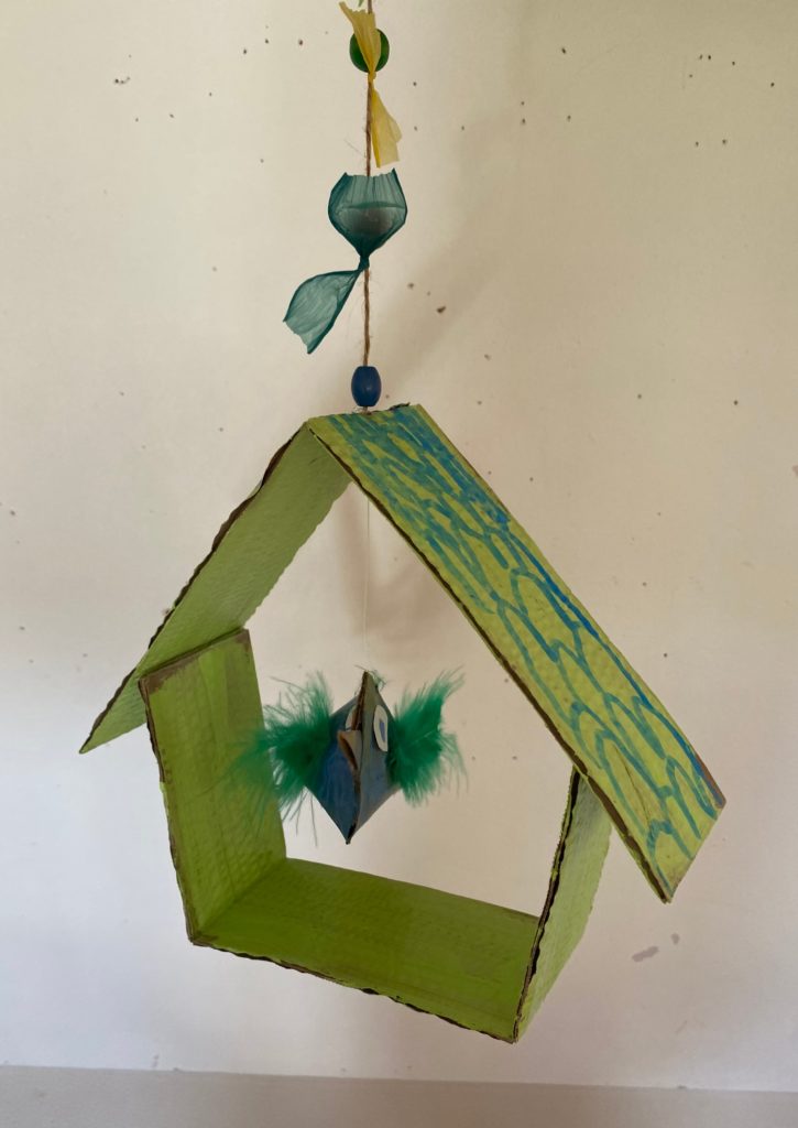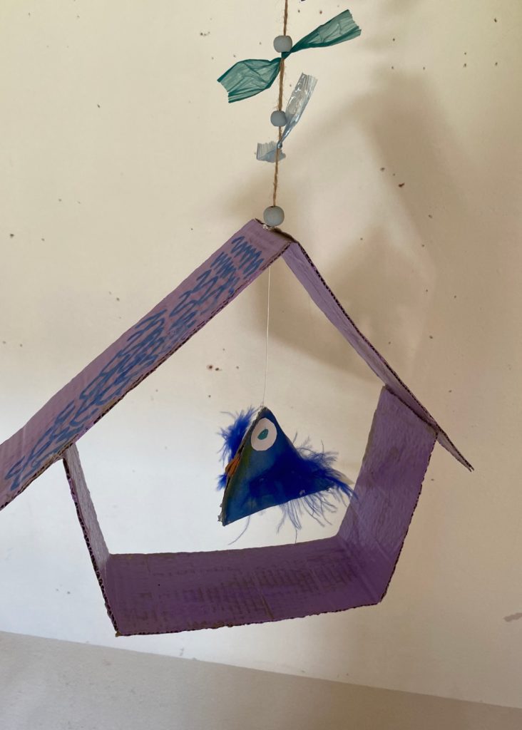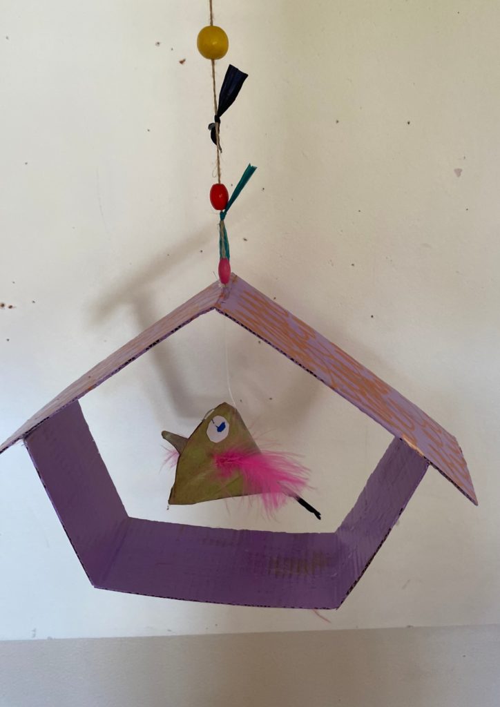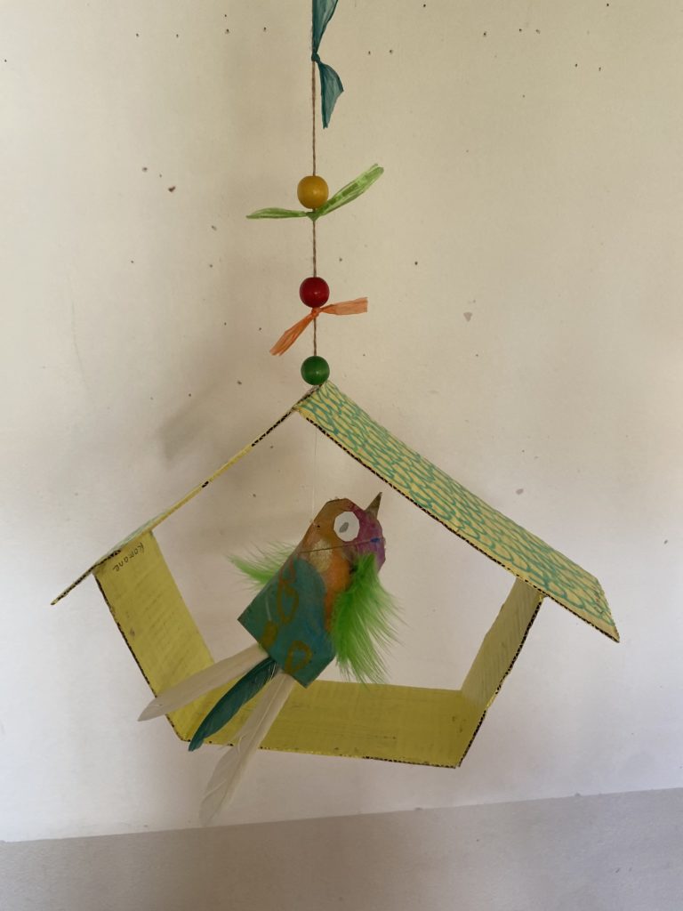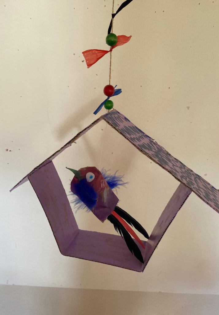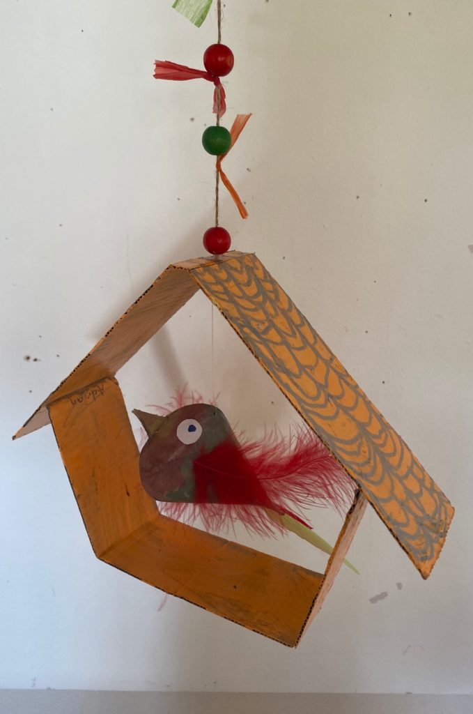 On a fait des petits oiseaux tout colorés. Les 1P les ont collés sur des branches d’arbre, et les 2P leur ont fabriqué une jolie cabane.
