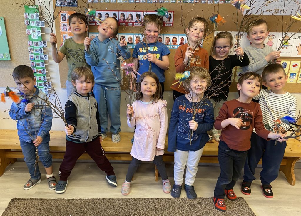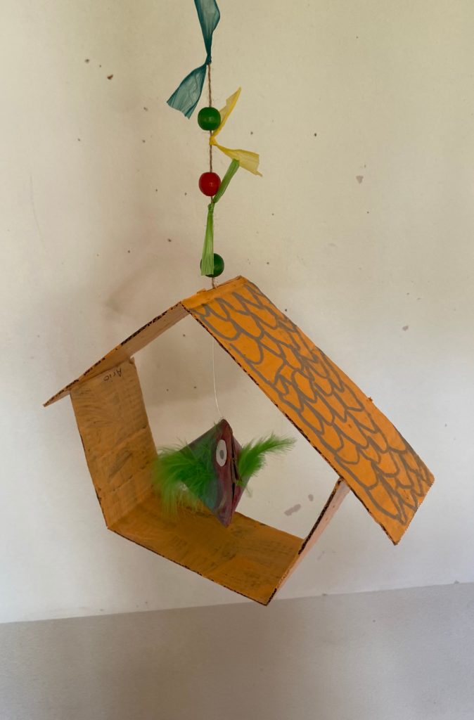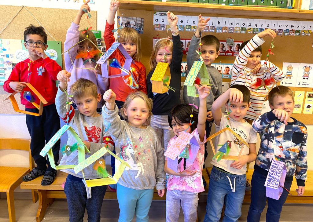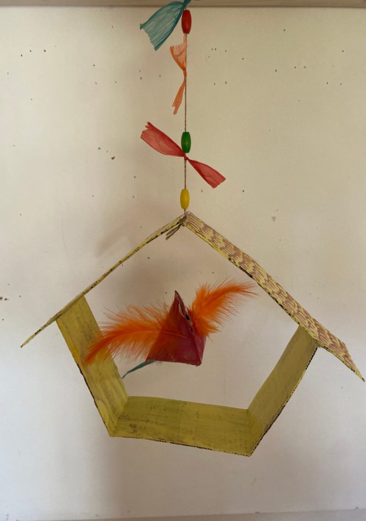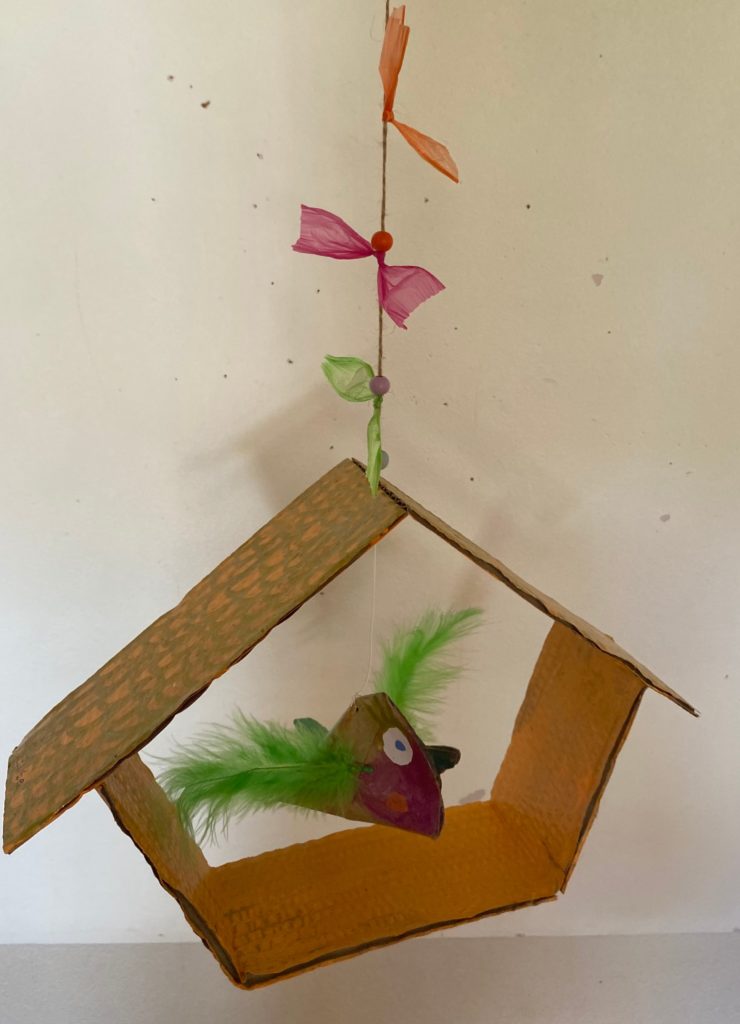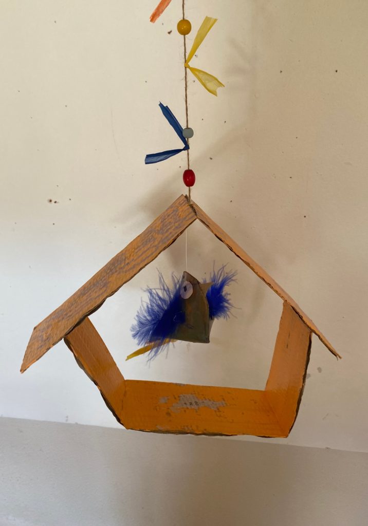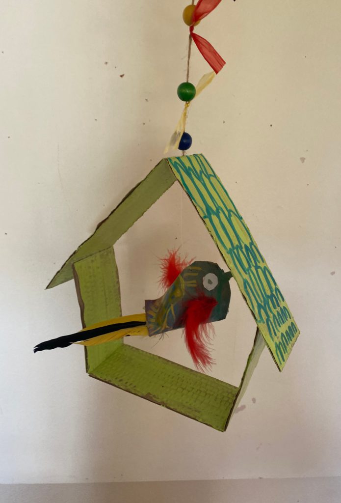 On a fait des petits oiseaux tout colorés. Les 1P les ont collés sur des branches d’arbre, et les 2P leur ont fabriqué une jolie cabane.
