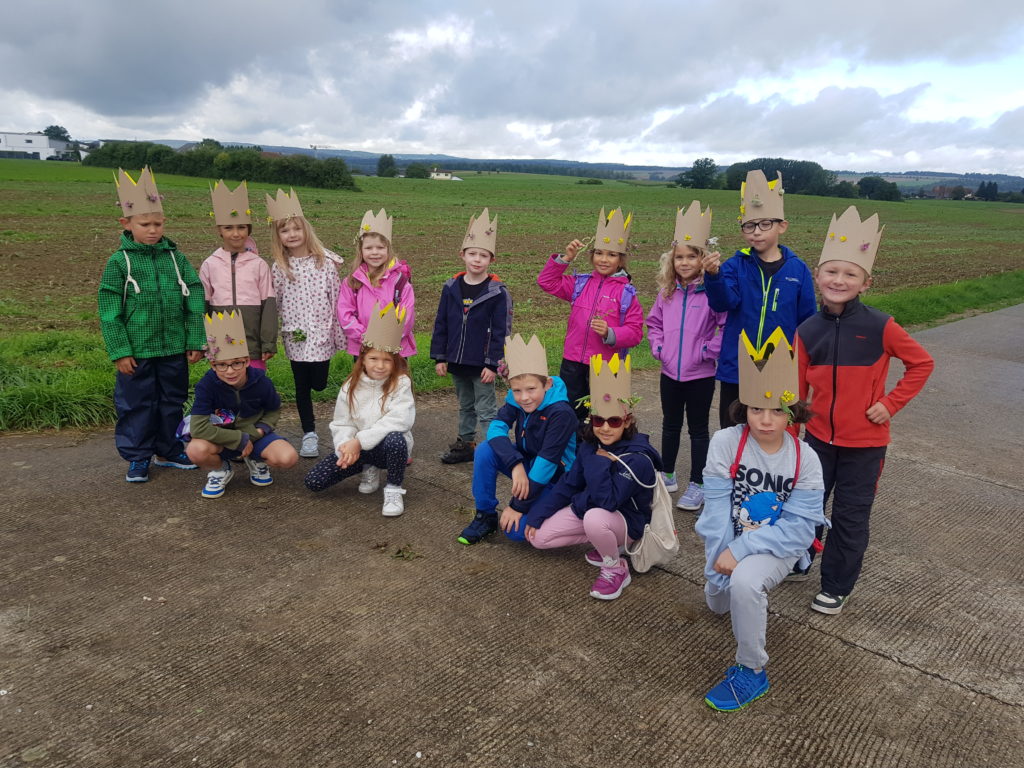 En route et entre les gouttes, on a ramassé des fleurs dans les champs pour décorer nos belles couronnes.
