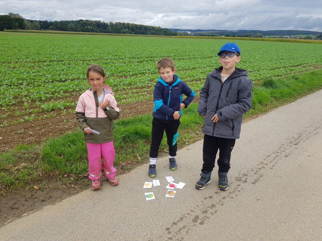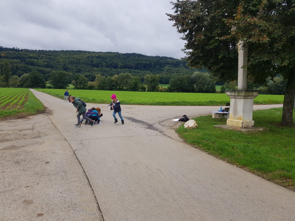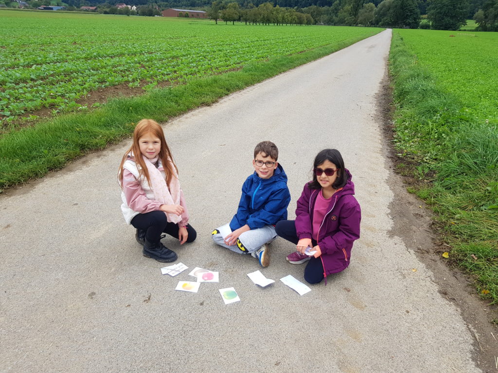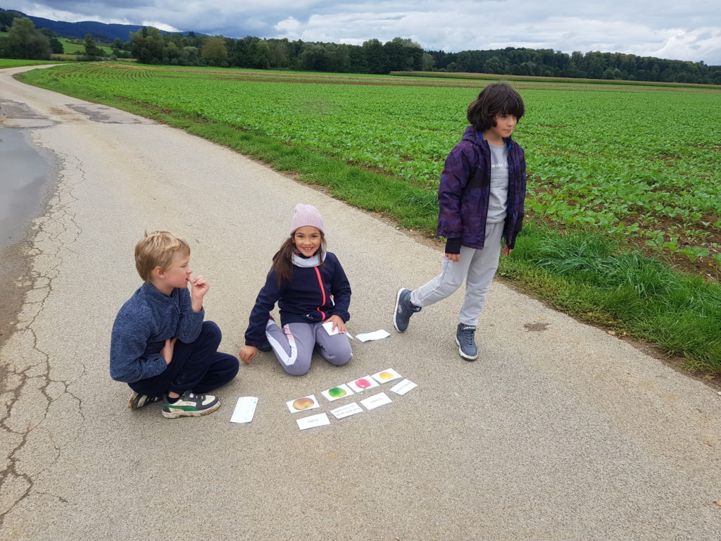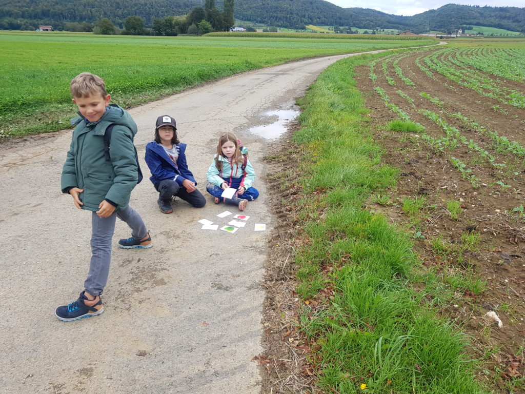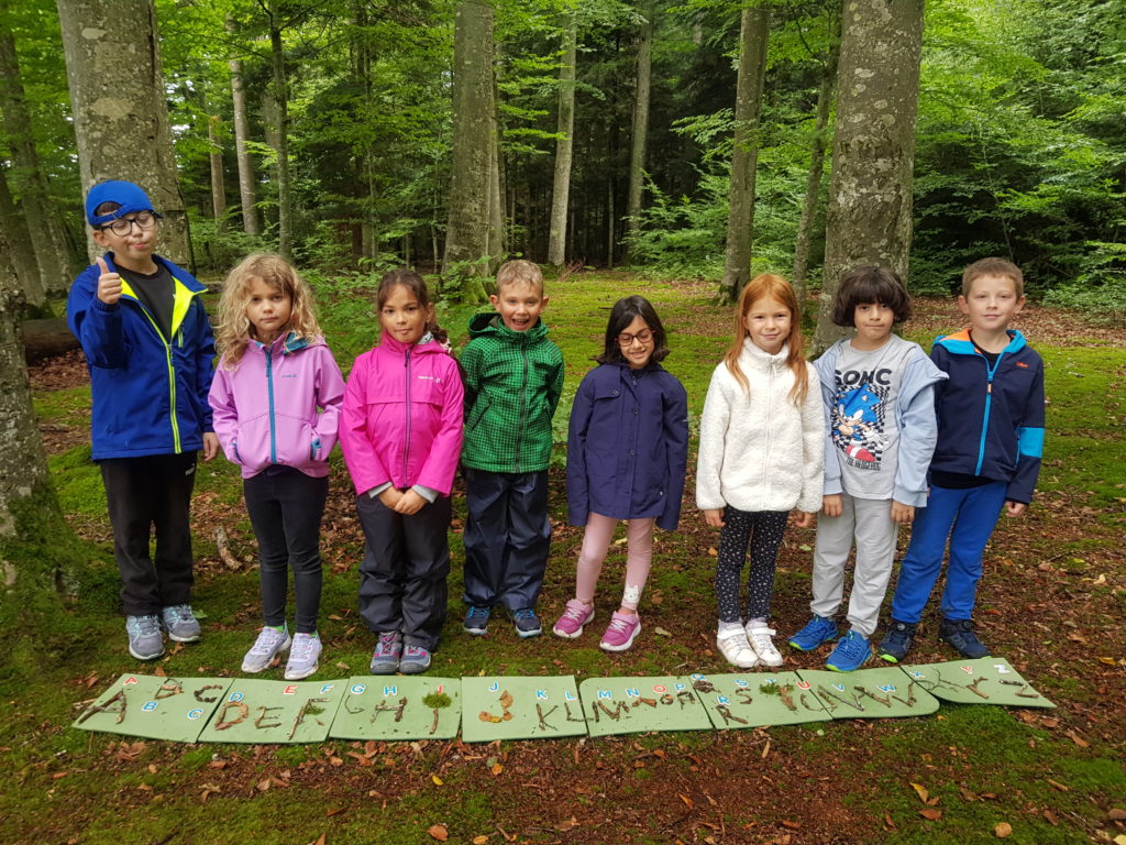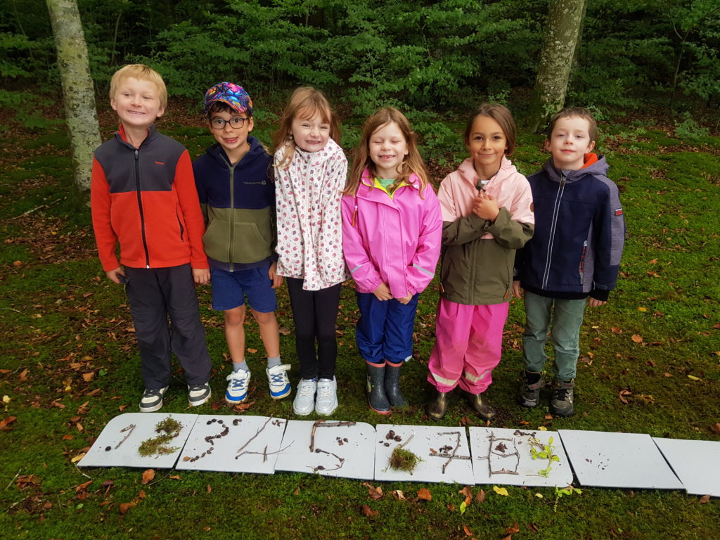 Puis, arrivĂ©s dans la jolie clairière derrière l’Ă©tang, les 4P ont fabriquĂ© l’alphabet avec les Ă©lĂ©ments de la nature pendant que les 3P ont prĂ©parĂ© les chiffres.