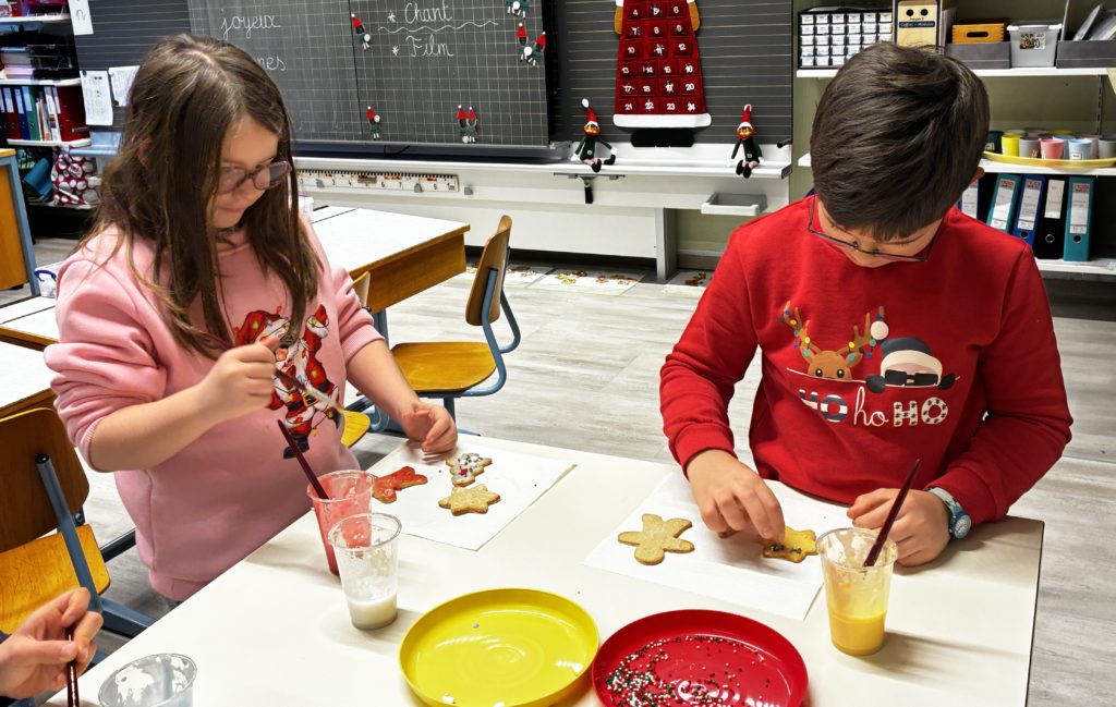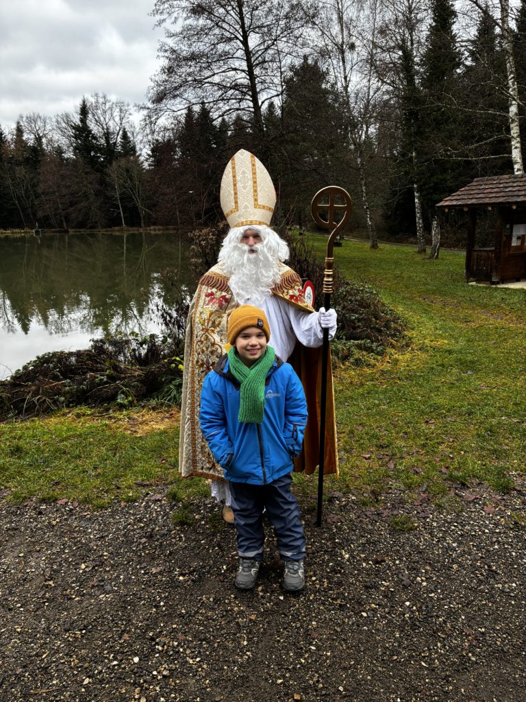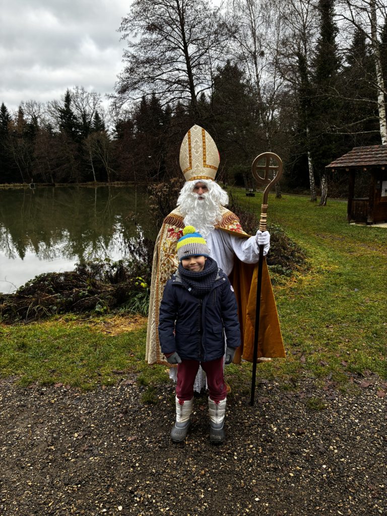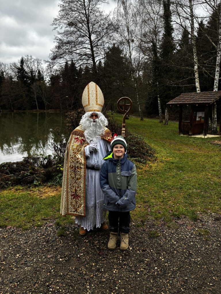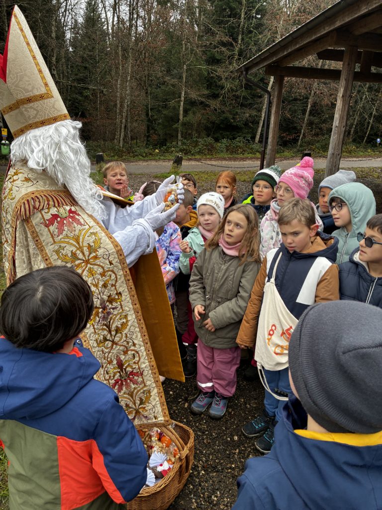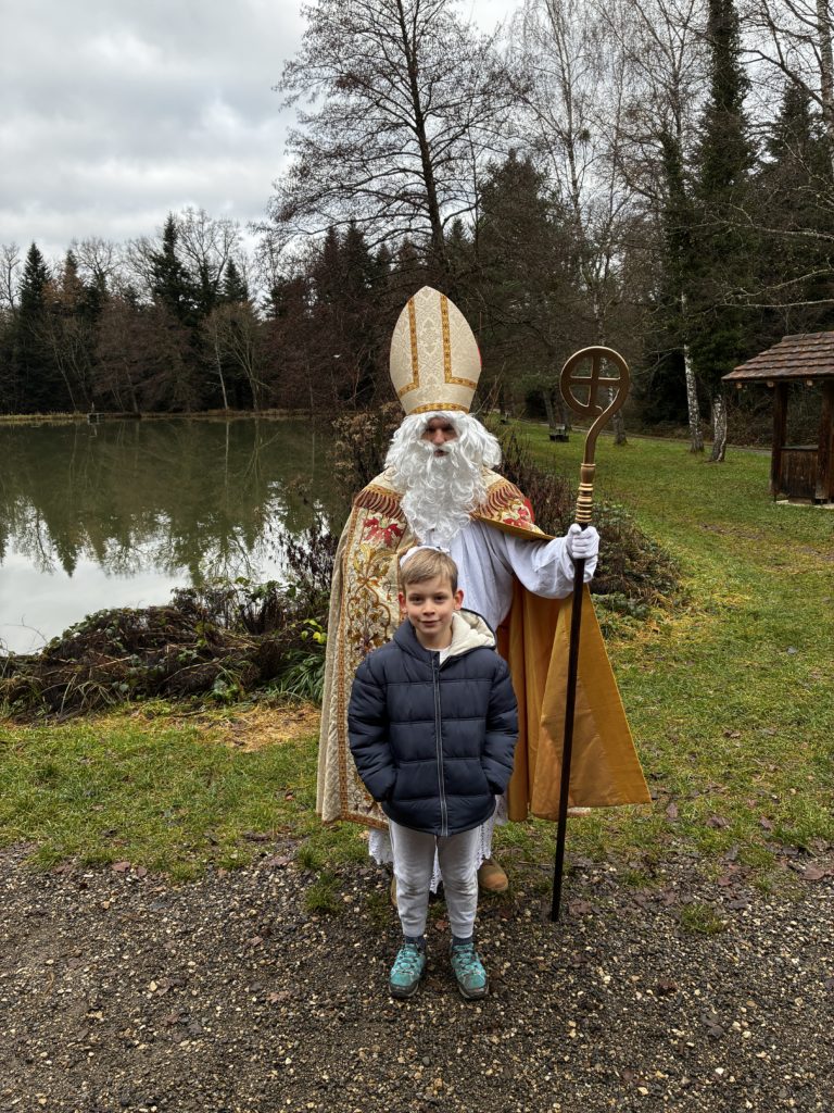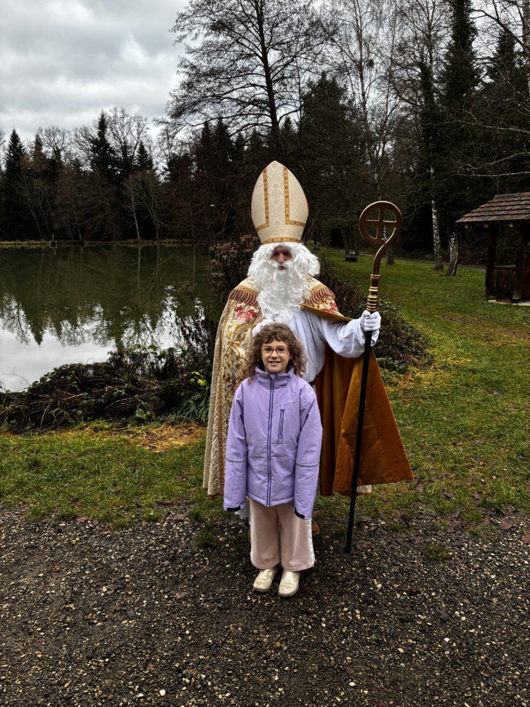 Saint-Nicolas nous attendait avec des cadeaux et nous lui avons récité notre poésie. Ce fut un moment magique !