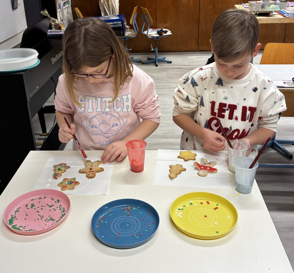 Nous avons colorĂ© du sucre glace et nous avons pu peindre ces jolis biscuits de toutes les couleurs…. quels dĂ©lices !