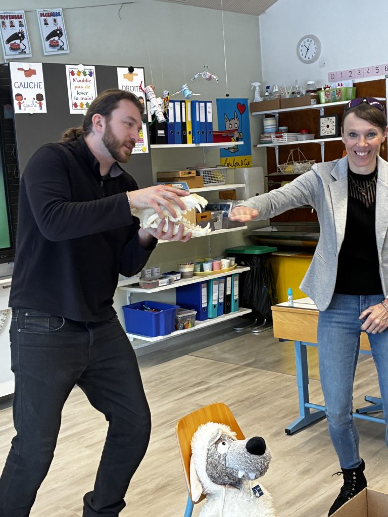 Nous avons eu la chance de bĂ©nĂ©ficier de deux leçons donnĂ©es par EduWolf par Sonny et Isabelle. Ils nous ont montrĂ© les mâchoires d’un loup et sa fourrure. Nous avons appris comment vivait le loup et ce qu’il mangeait.