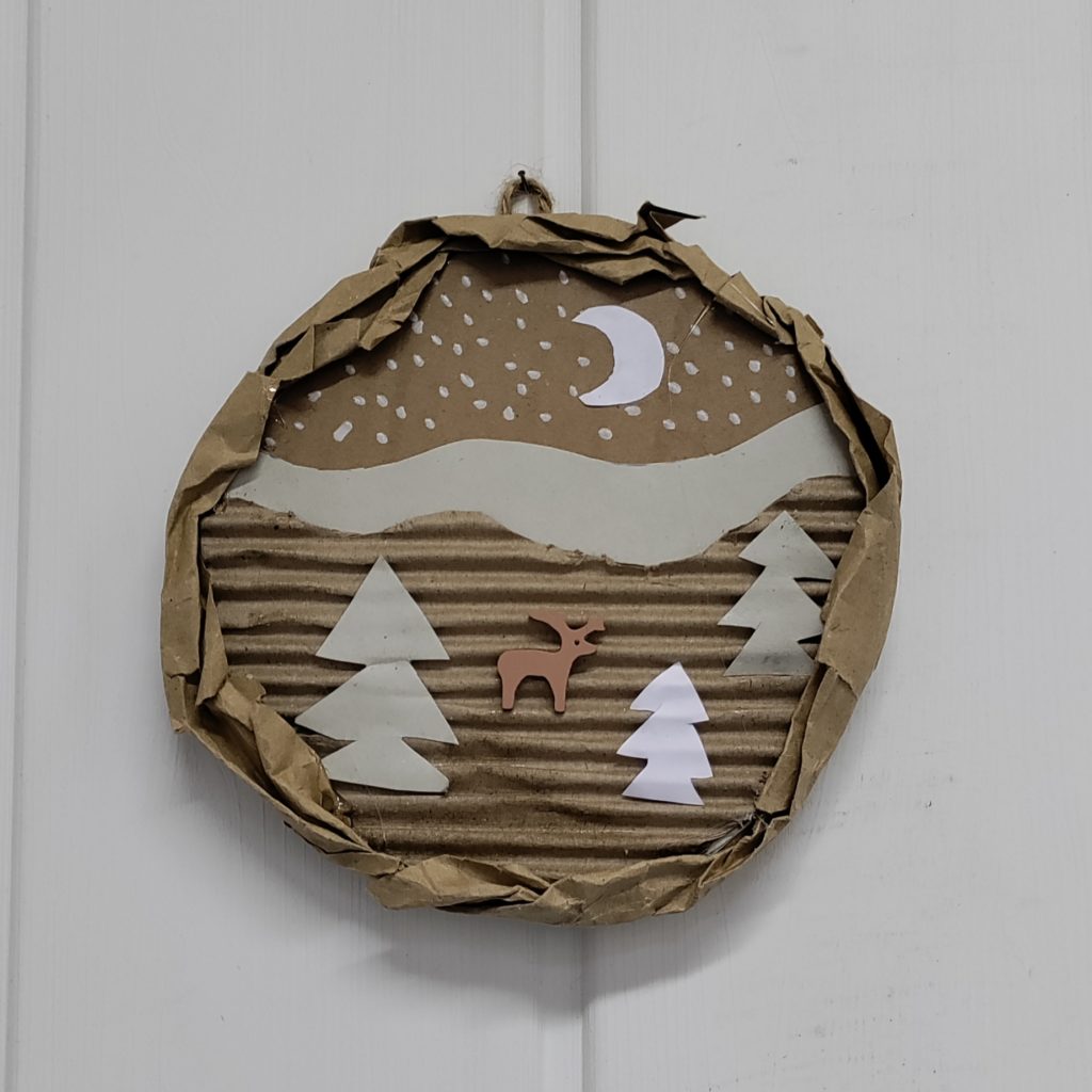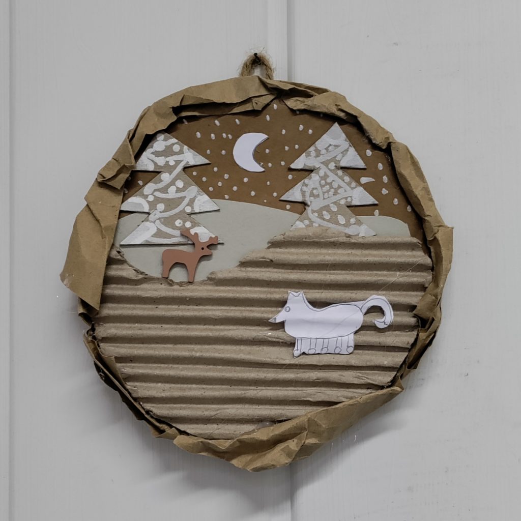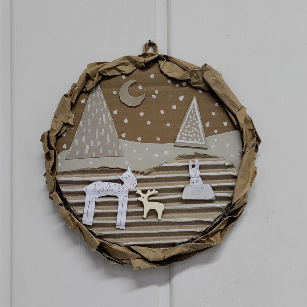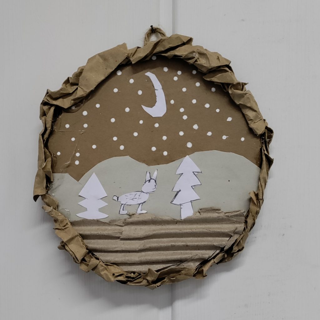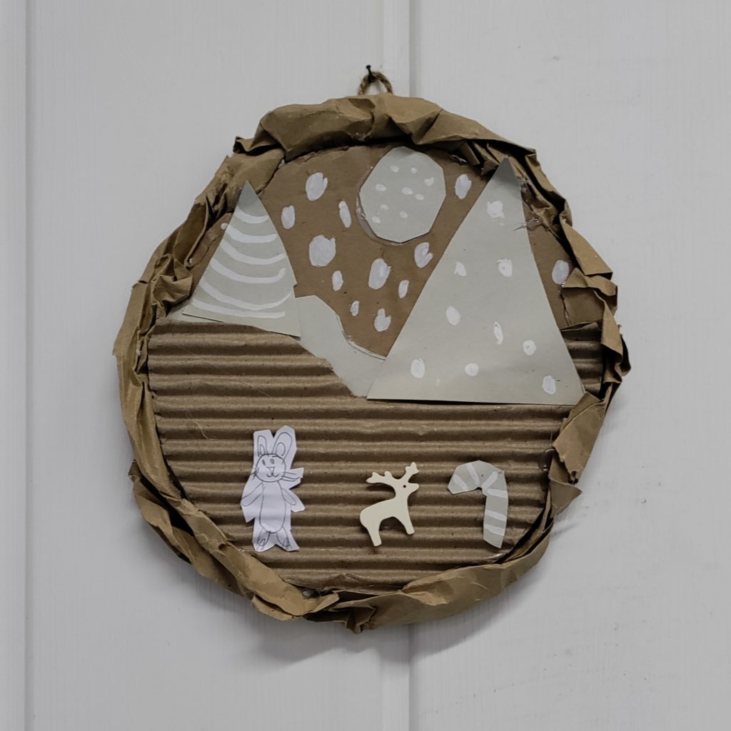 Les 5P ont fabriqué des cadres hivernaux tout en papier-carton. L’occasion de s’amuser avec les différentes variations de coloris, relief et épaisseur de ce matériau brut pour représenter un paysage de saison.
