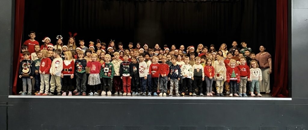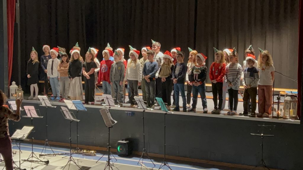 Nous avons chantĂ© pour les parents et les habitants du village lors du calendrier de l’Avent du village.