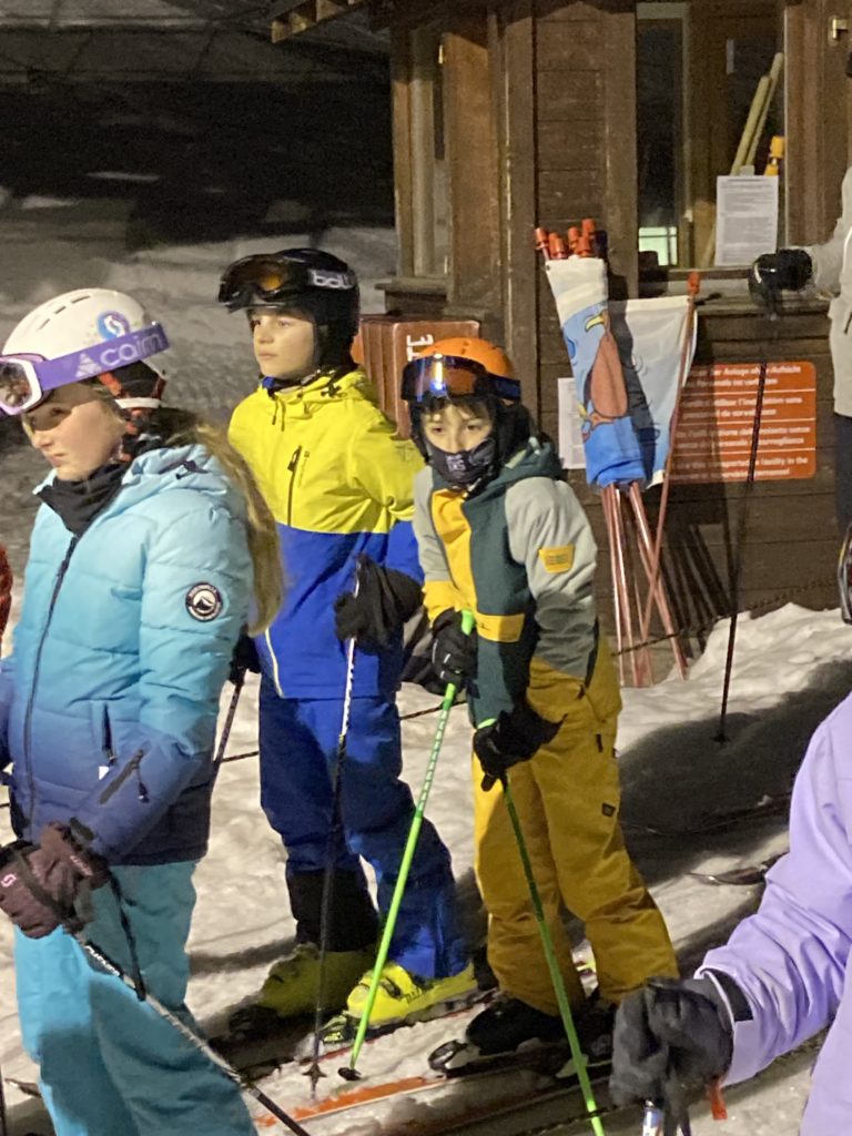 Le mercredi, c’est ski nocturne et on s’éclate! Qui peut deviner à combien nous sommes montés à l’arbalète?