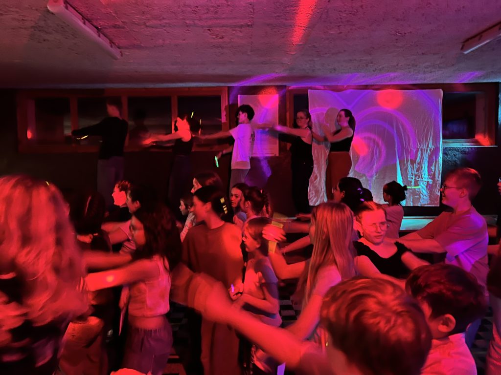 Nous avons chanté pour les parents et les habitants du village lors du calendrier de l’Avent du village.